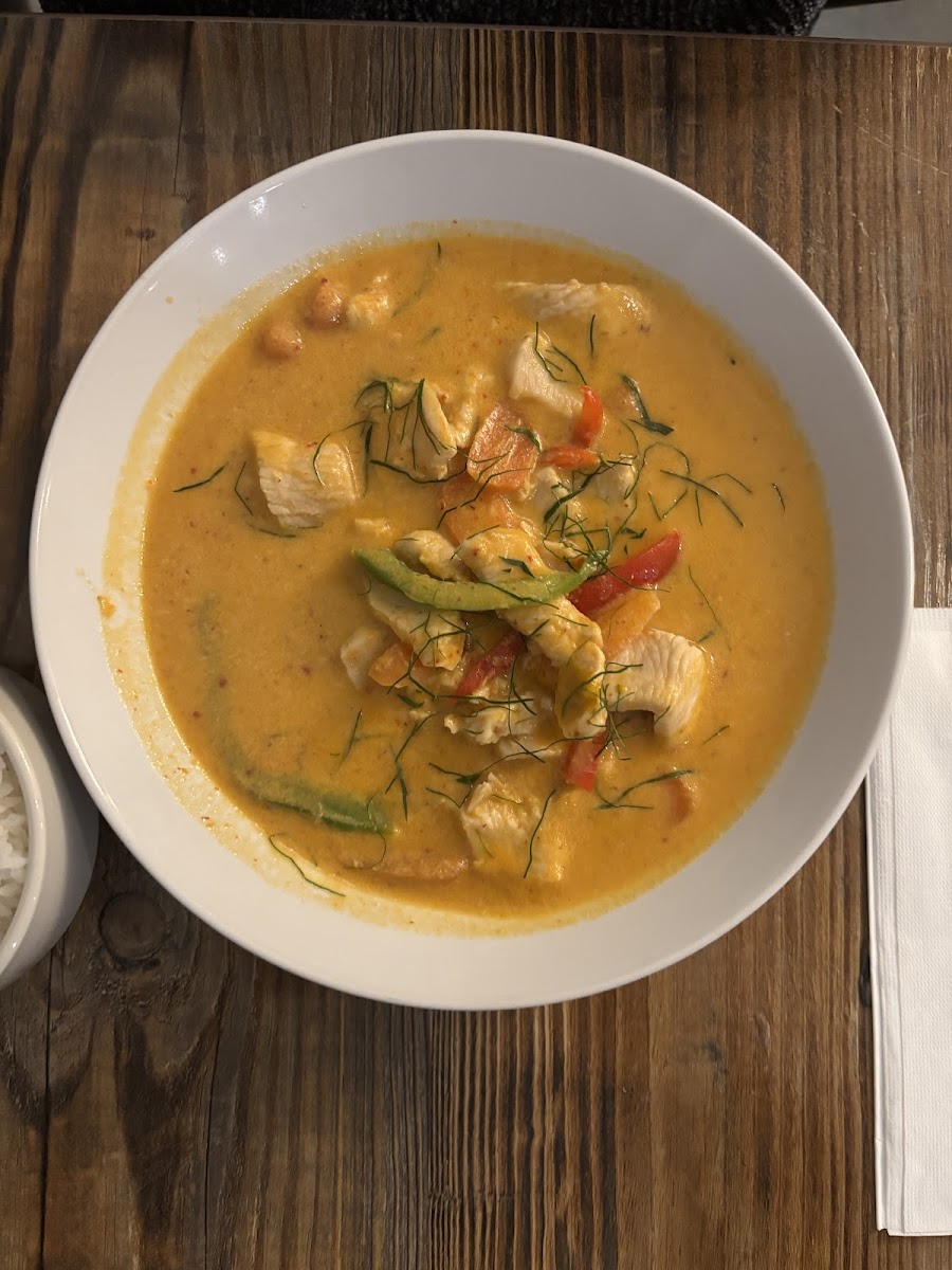 If you’re seeking the heartwarming comfort of curry, the Massaman Curry—with its aromatic blend of onions, potatoes, and peanuts simmered in creamy coconut milk— is a must-try, especially with its fragrant spices like cinnamon and cardamom. Alternatively, the Panang Curry offers a rich and full-bodied texture enhanced by bell peppers and lime leaves, making for an unforgettable experience.